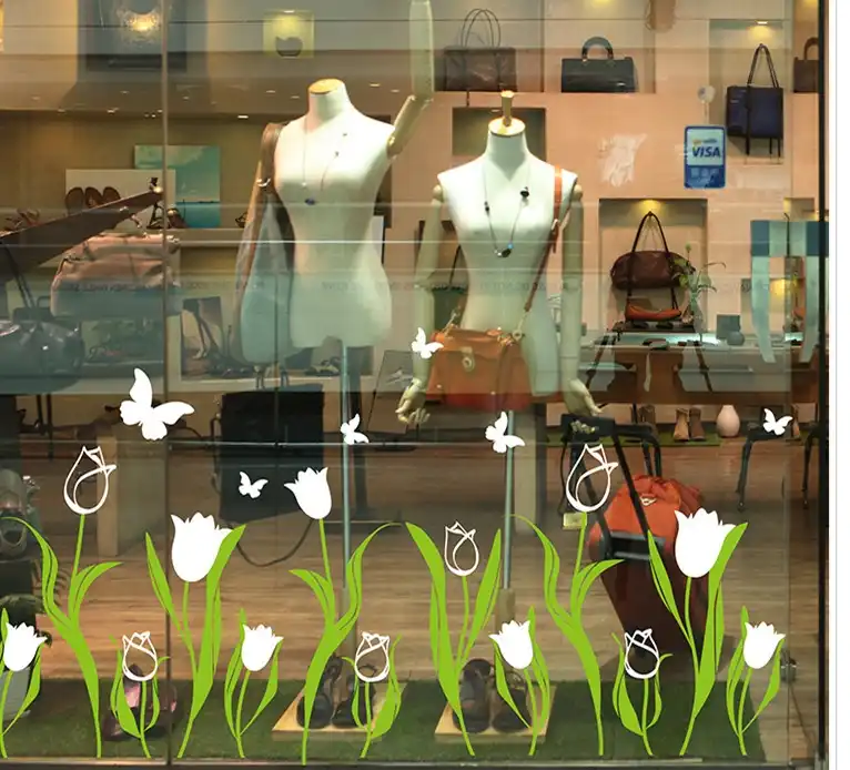 Plum Tulips Flowers And Butterflies Transparent Wall Decals For