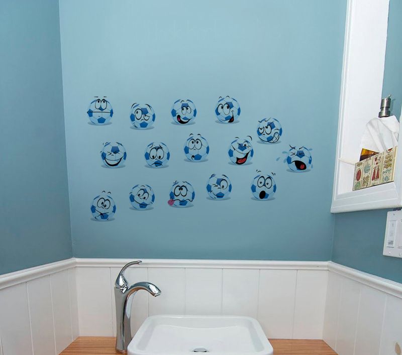 Set Football Smile Face Wall Art Mural Sticker Transparent Pvc