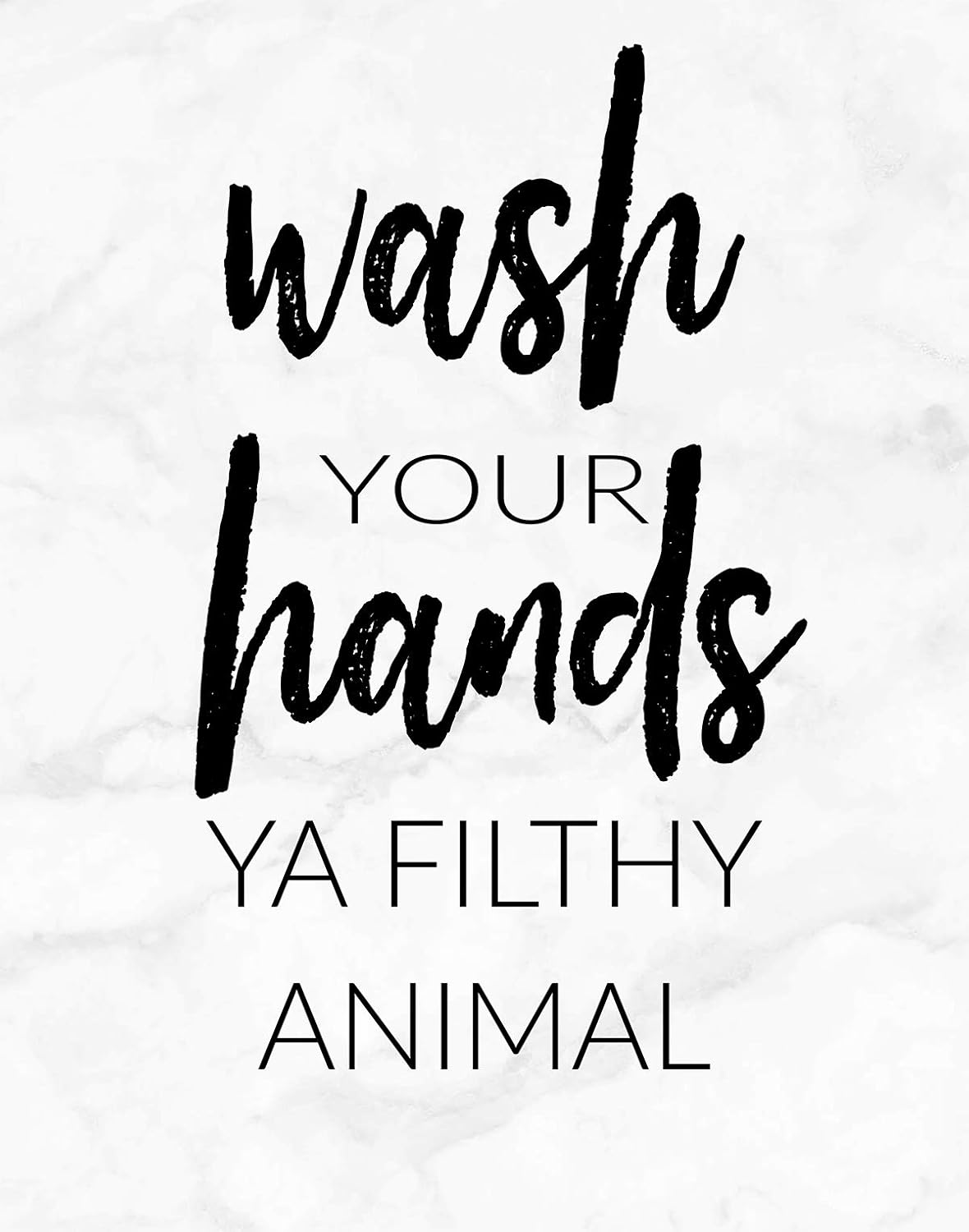 Wash Your Hands You Filthy Animal Printable Art Funny Bathroom