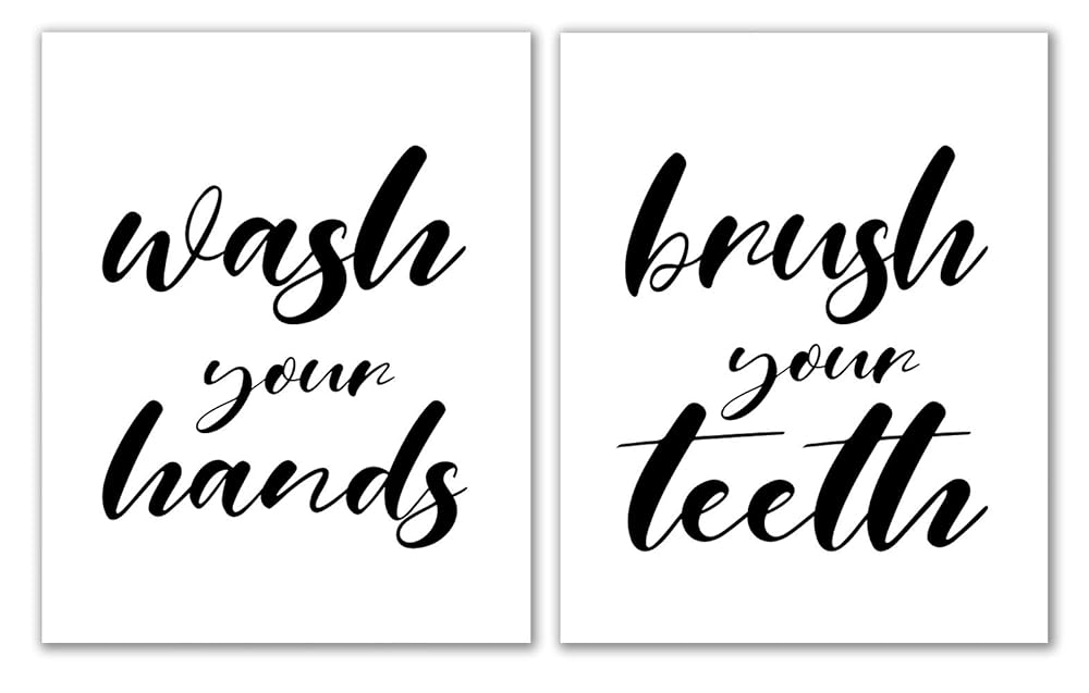 Wash Your Hands Brush Your Teeth Quote Bathroom Decor 2 Pieces